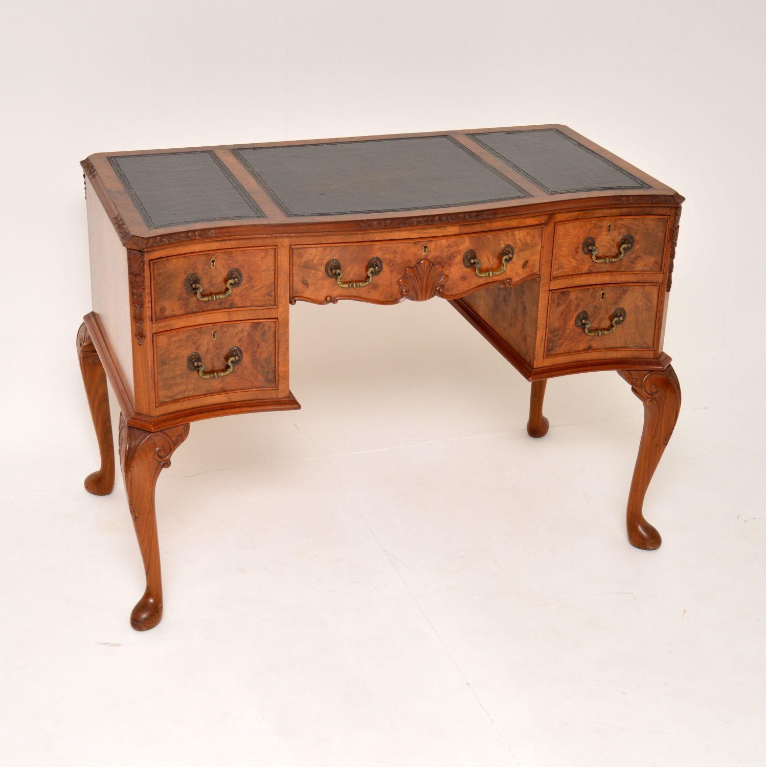 Antique Burr Walnut Leather Top Writing Desk
