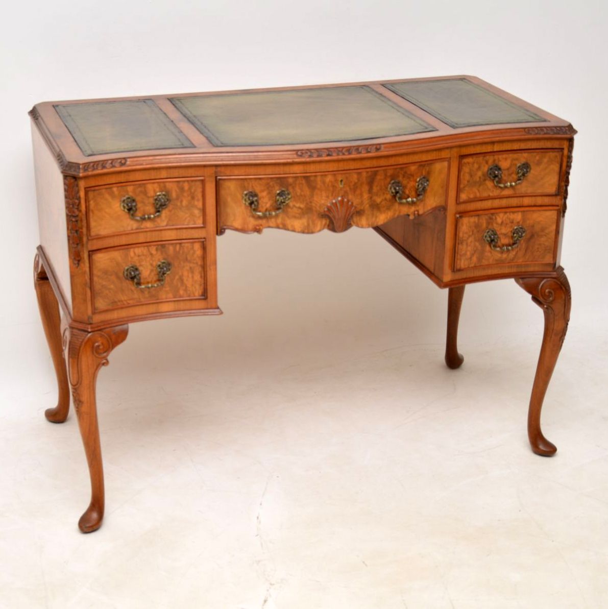 Antique Burr Walnut Leather Top Writing Table / Desk