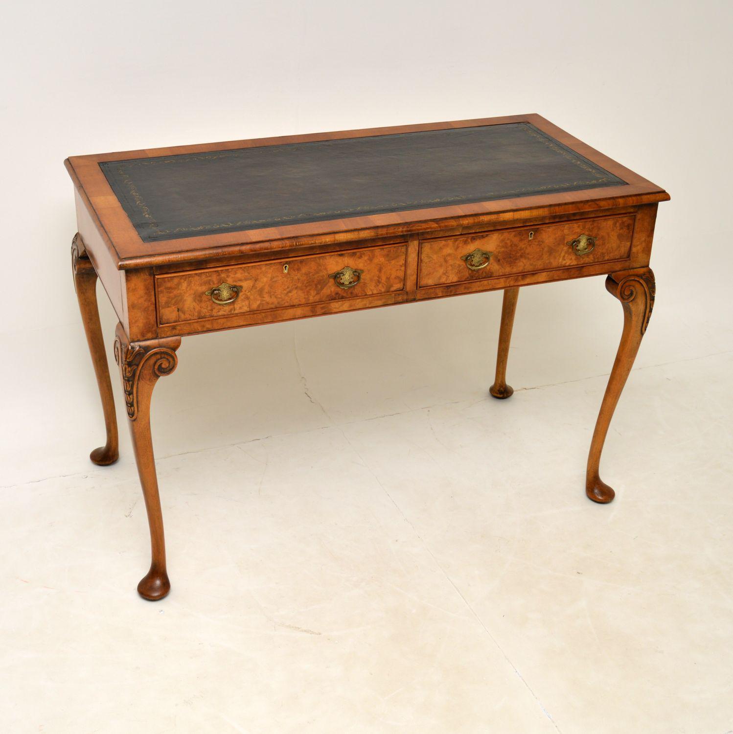 Antique Burr Walnut Leather Top Writing Table / Desk