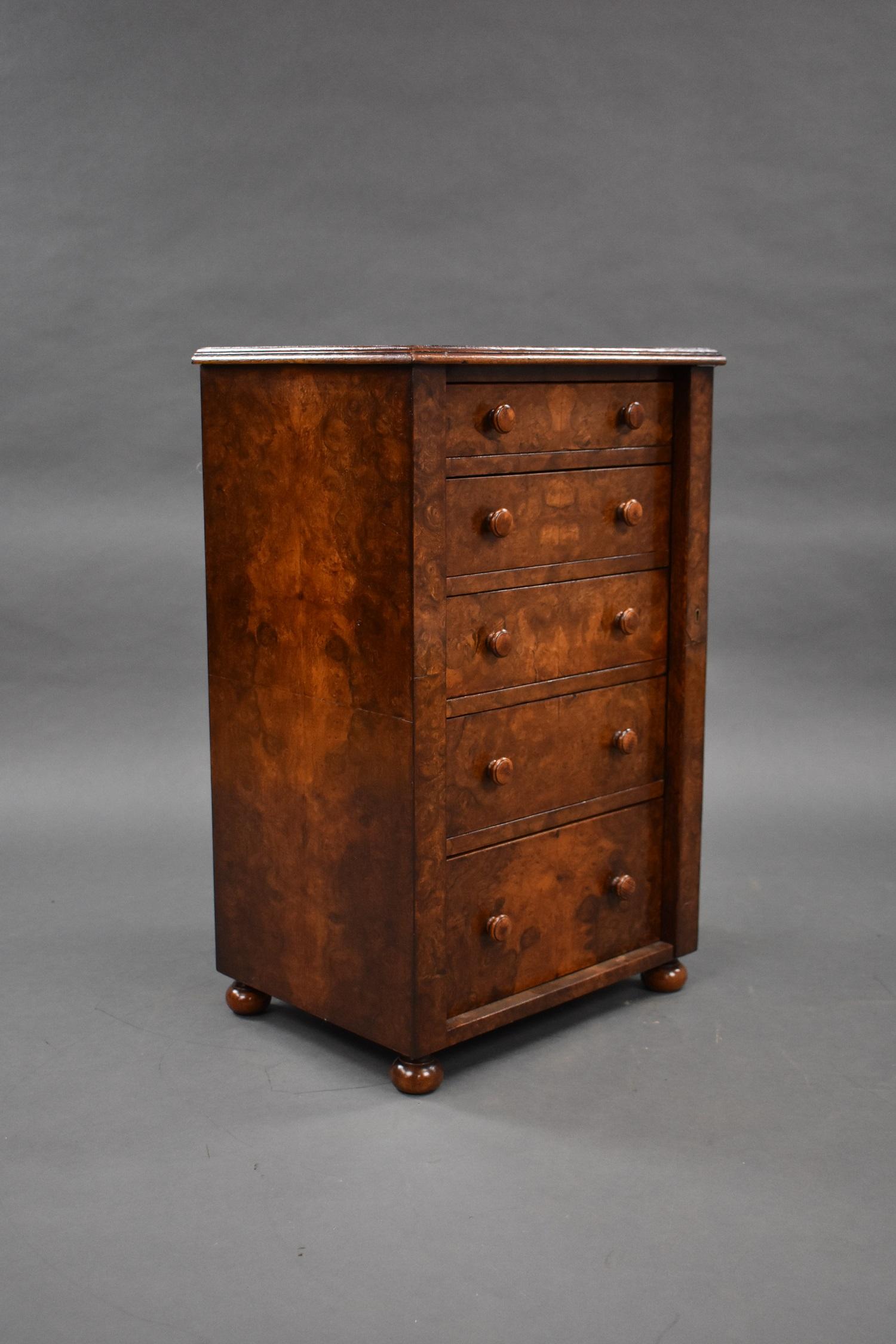 Antique Burr Walnut Miniature Wellington Chest