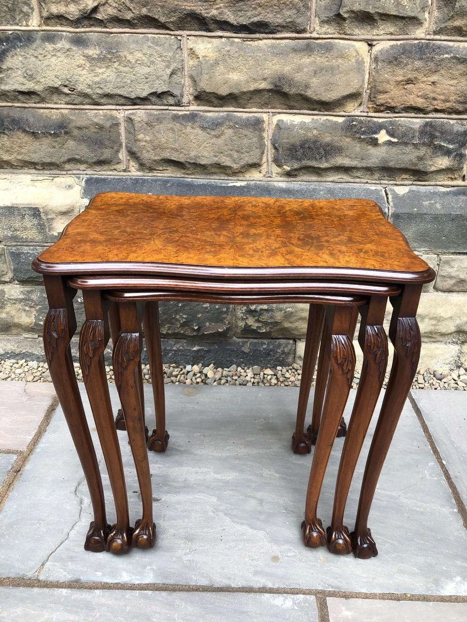 Antique Burr Walnut Nest 3 Tables