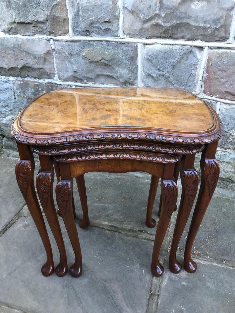 Antique Burr Walnut Nest of 3 Kidney Shaped Tables