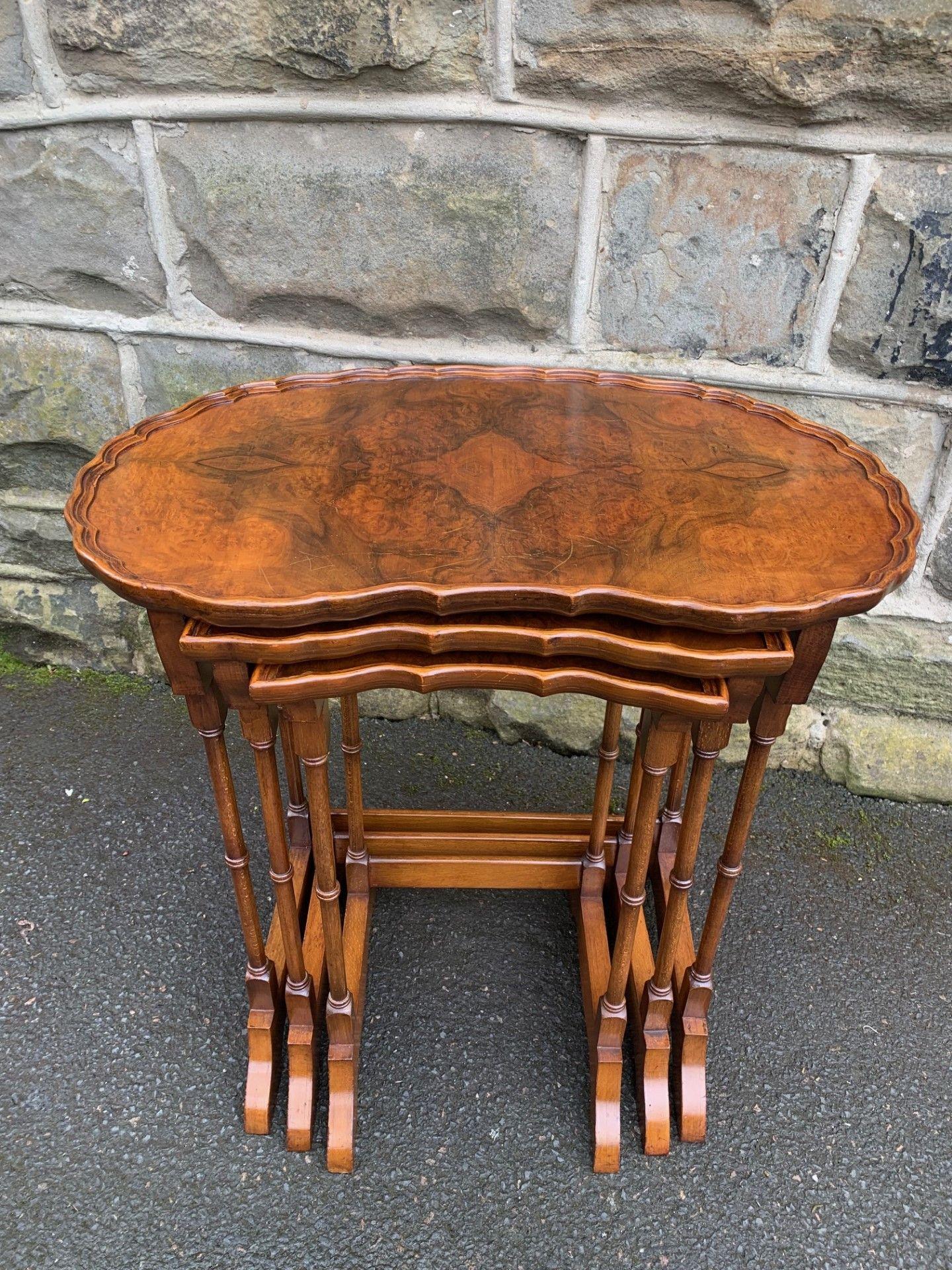 Antique Burr Walnut Nest of 3 Kidney Shaped Tables
