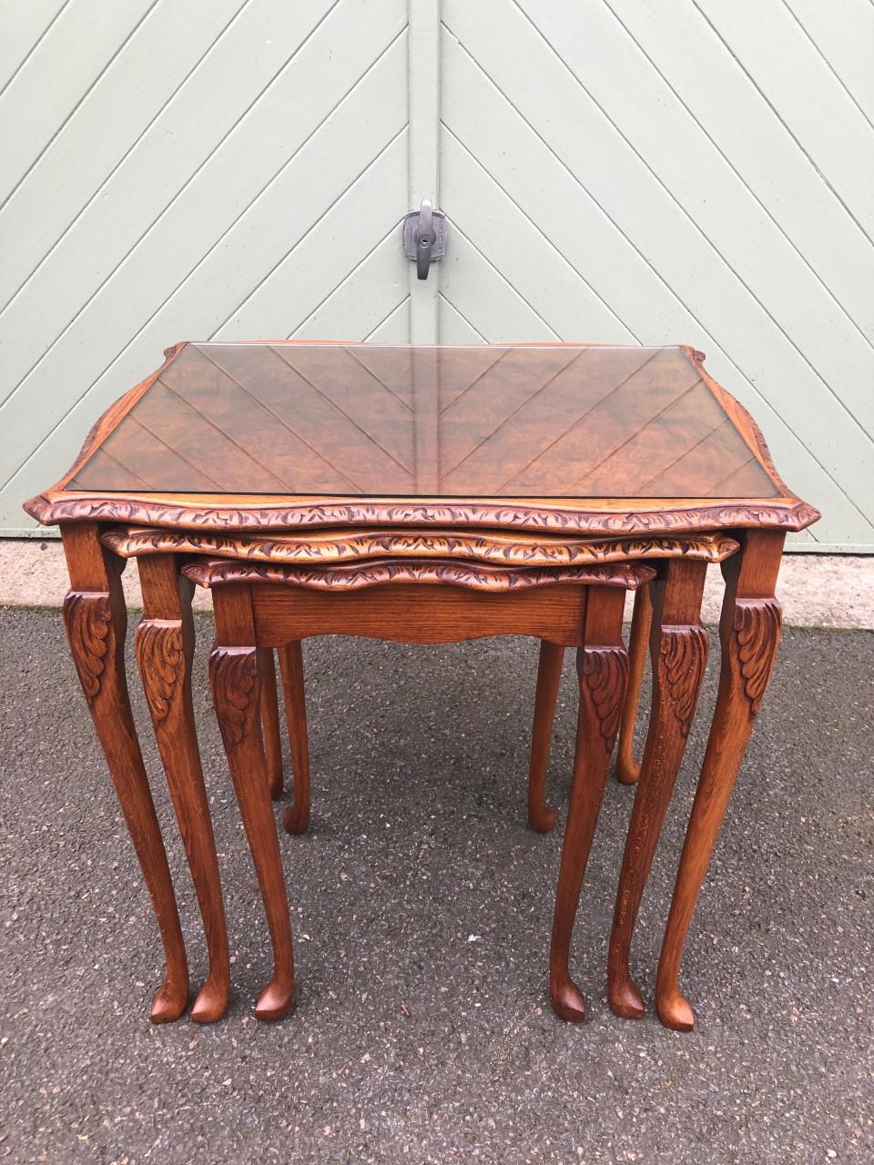 Antique Burr Walnut Nest of 3 Tables