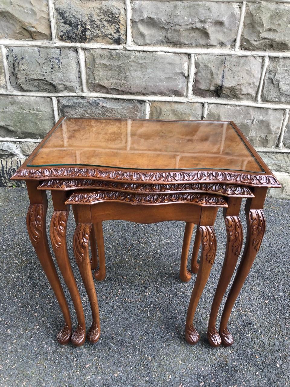 Antique Burr Walnut Nest of 3 Tables