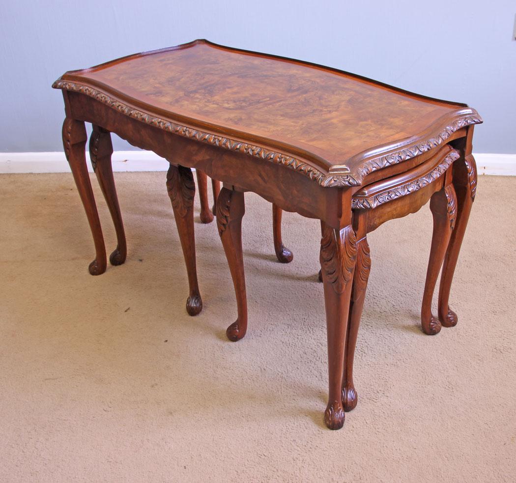 Antique Burr Walnut Nest of Three Occasional Coffee Tables (1 of 10)