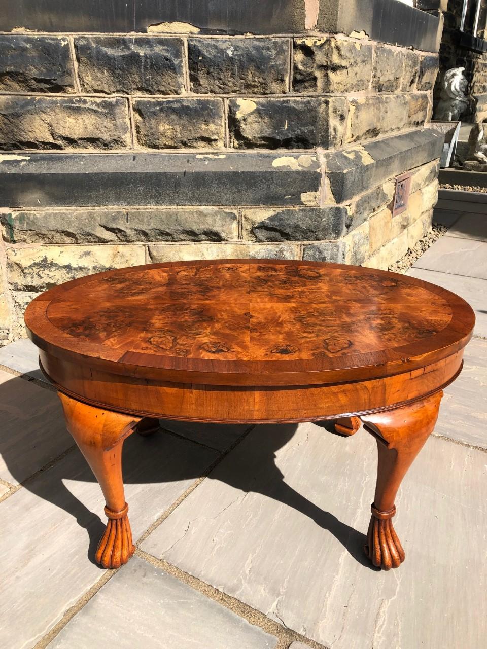 Antique Burr Walnut Oval Coffee Table