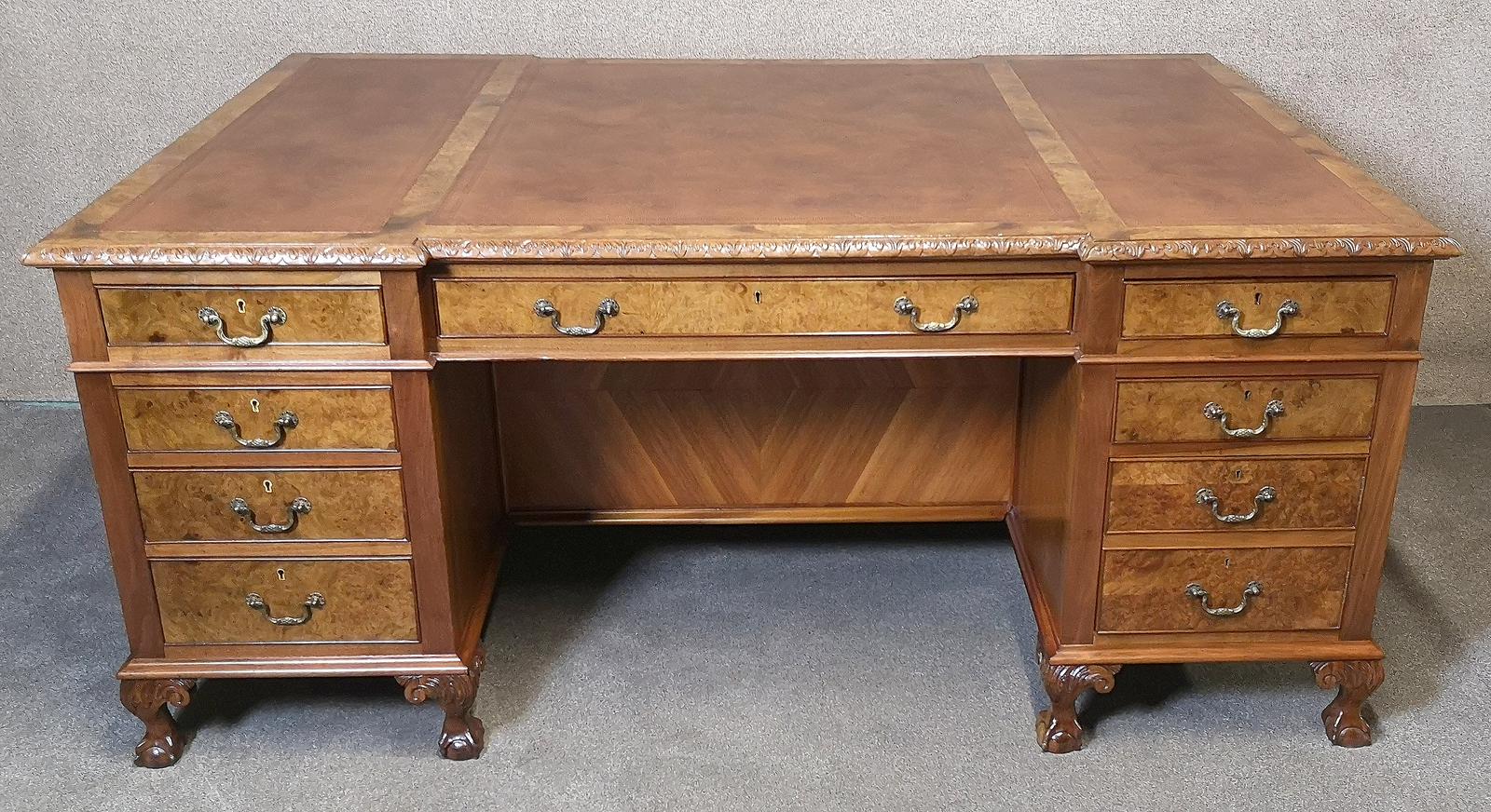 Antique Burr Walnut Partners Desk