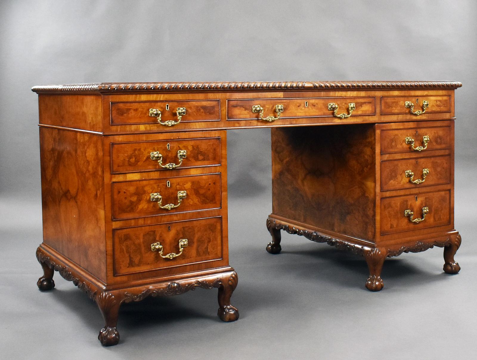 Antique Burr Walnut Pedestal Desk