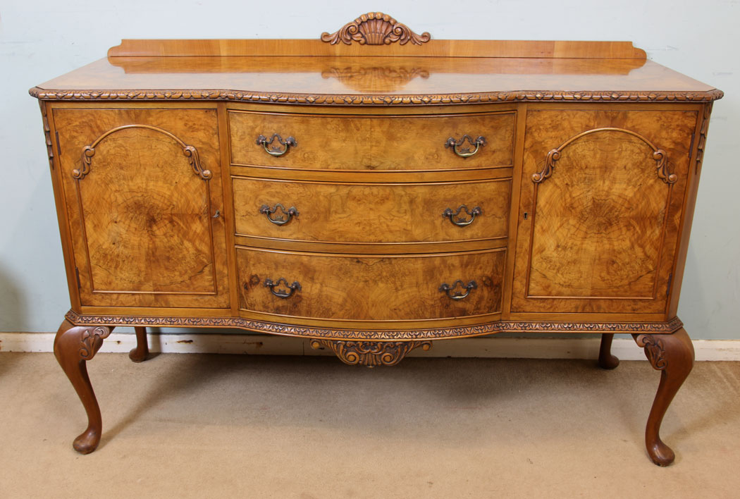 Antique Burr Walnut Queen Anne Style Sideboard Server