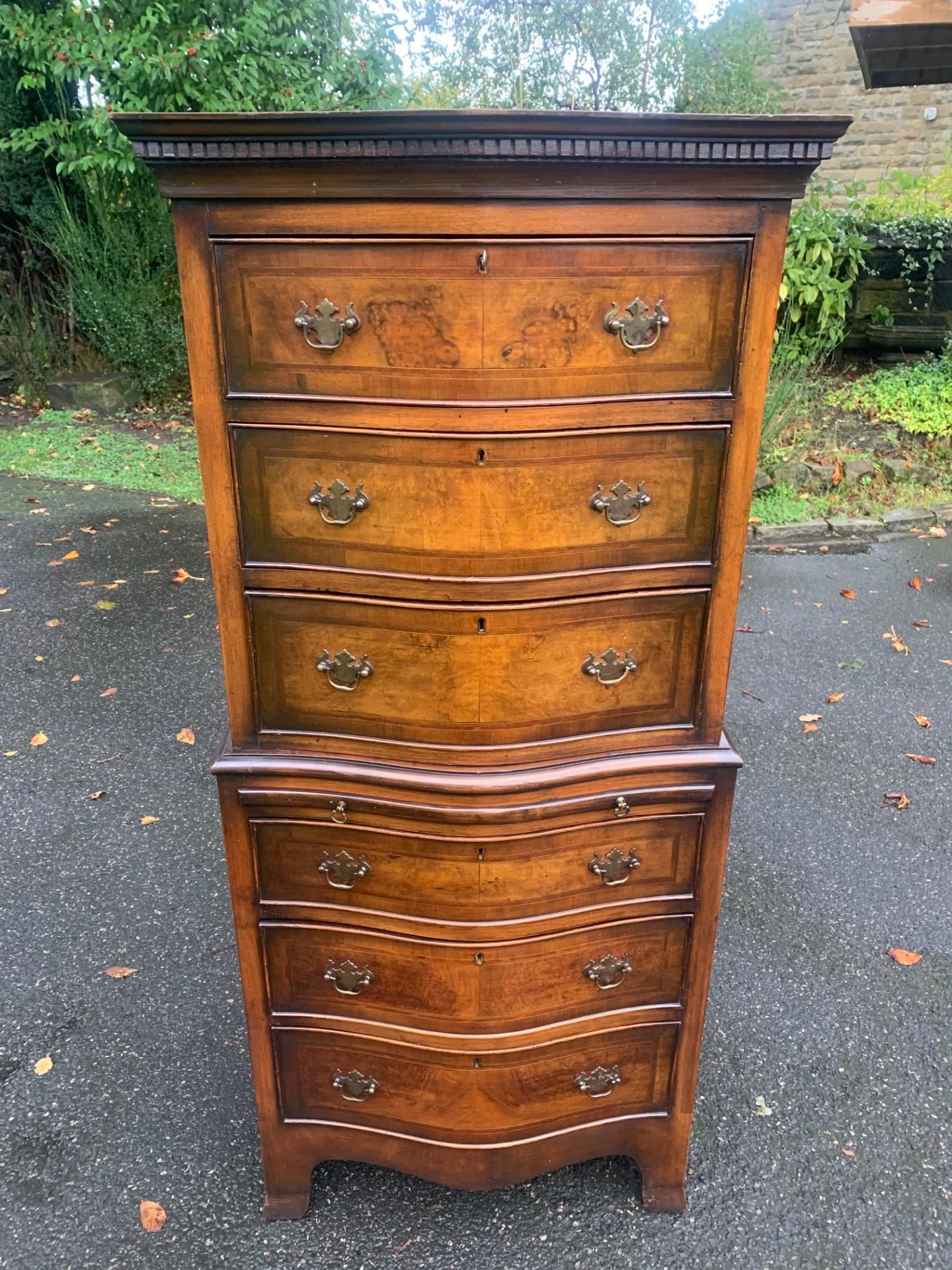 Antique Burr Walnut Serpentine Chest on Chest Tallboy
