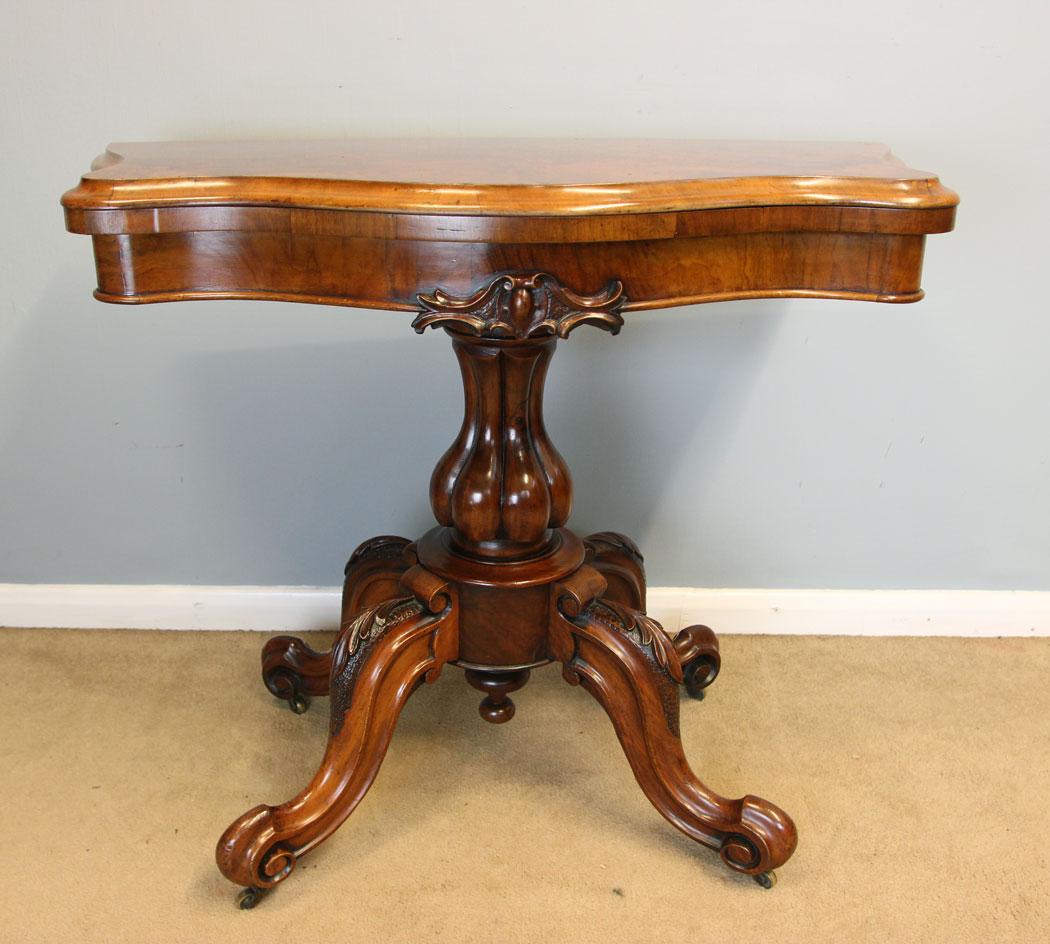 Antique Burr Walnut Serpentine Front Card Card Table (1 of 12)
