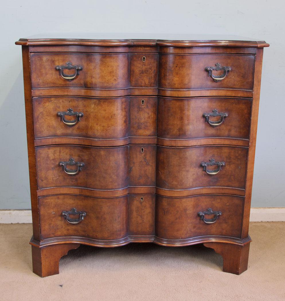 Antique Burr Walnut Serpentine Front Chest of Drawers