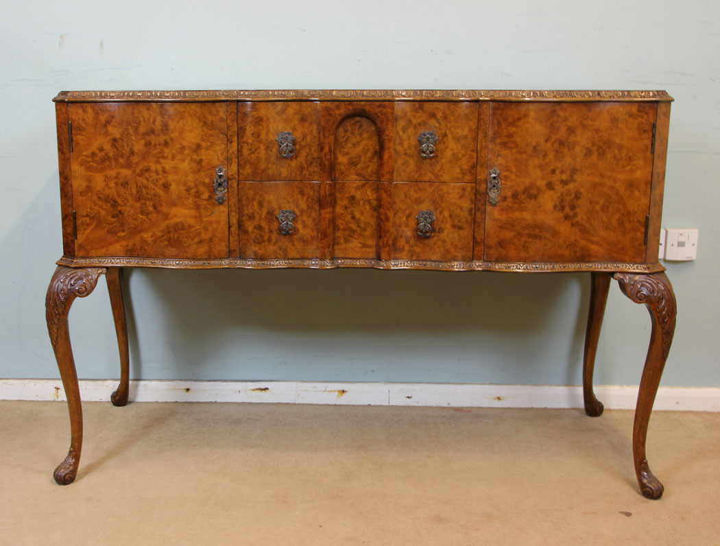 Antique Burr Walnut Serpentine Queen Anne Style Shaped Front Sideboard / Server (1 of 1)