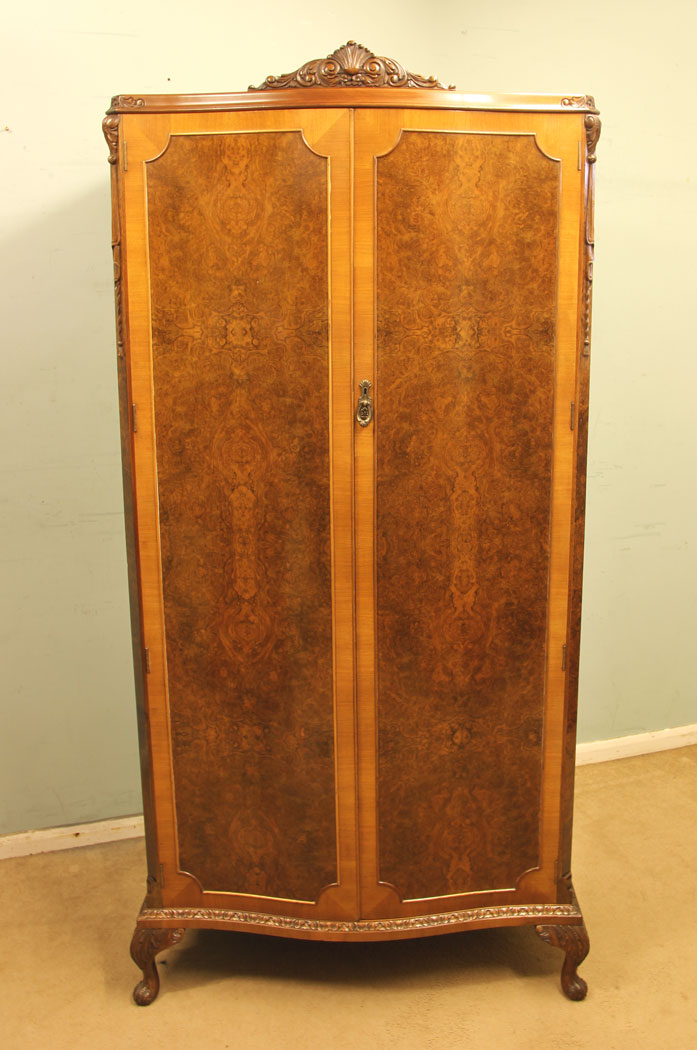 Antique Burr Walnut Shaped Double Wardrobe (1 of 12)