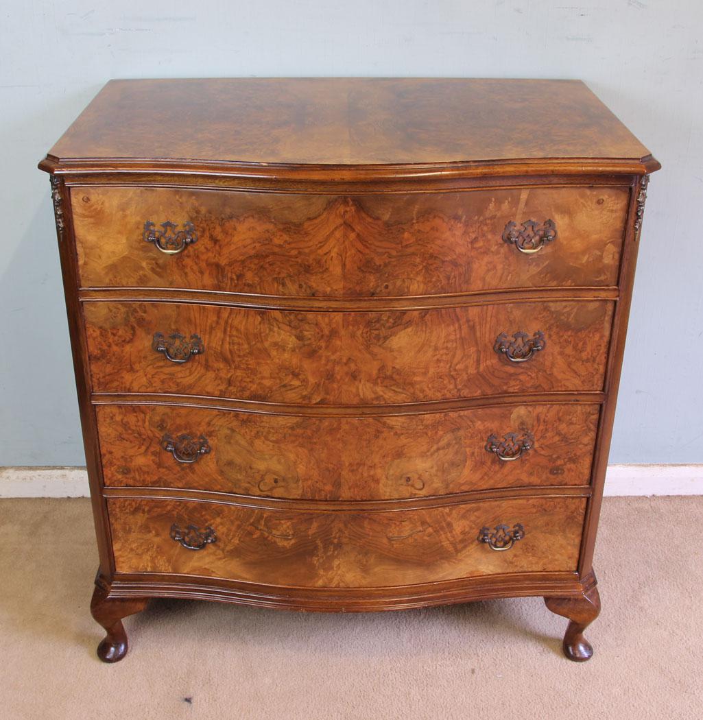 Antique Burr Walnut Shaped Front Chest of Drawers