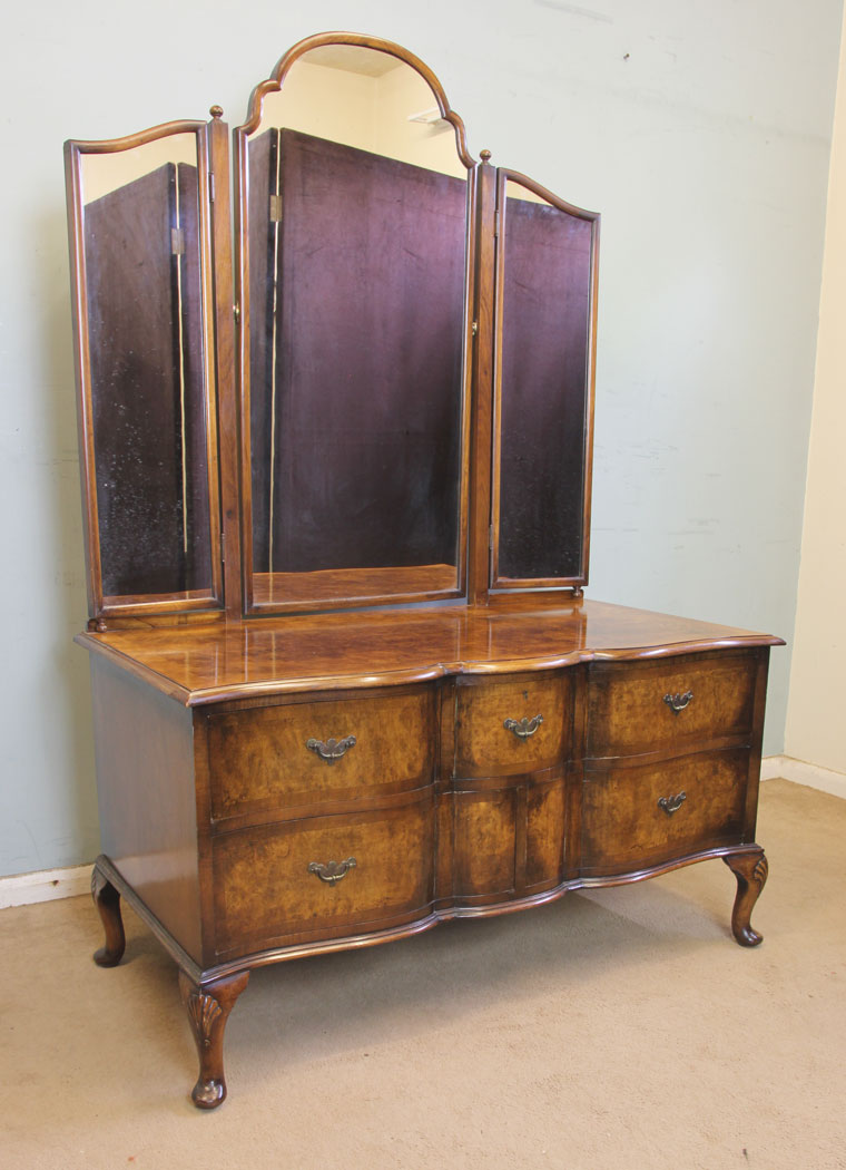 Antique Burr Walnut Triple Mirror Dressing Table (1 of 8)
