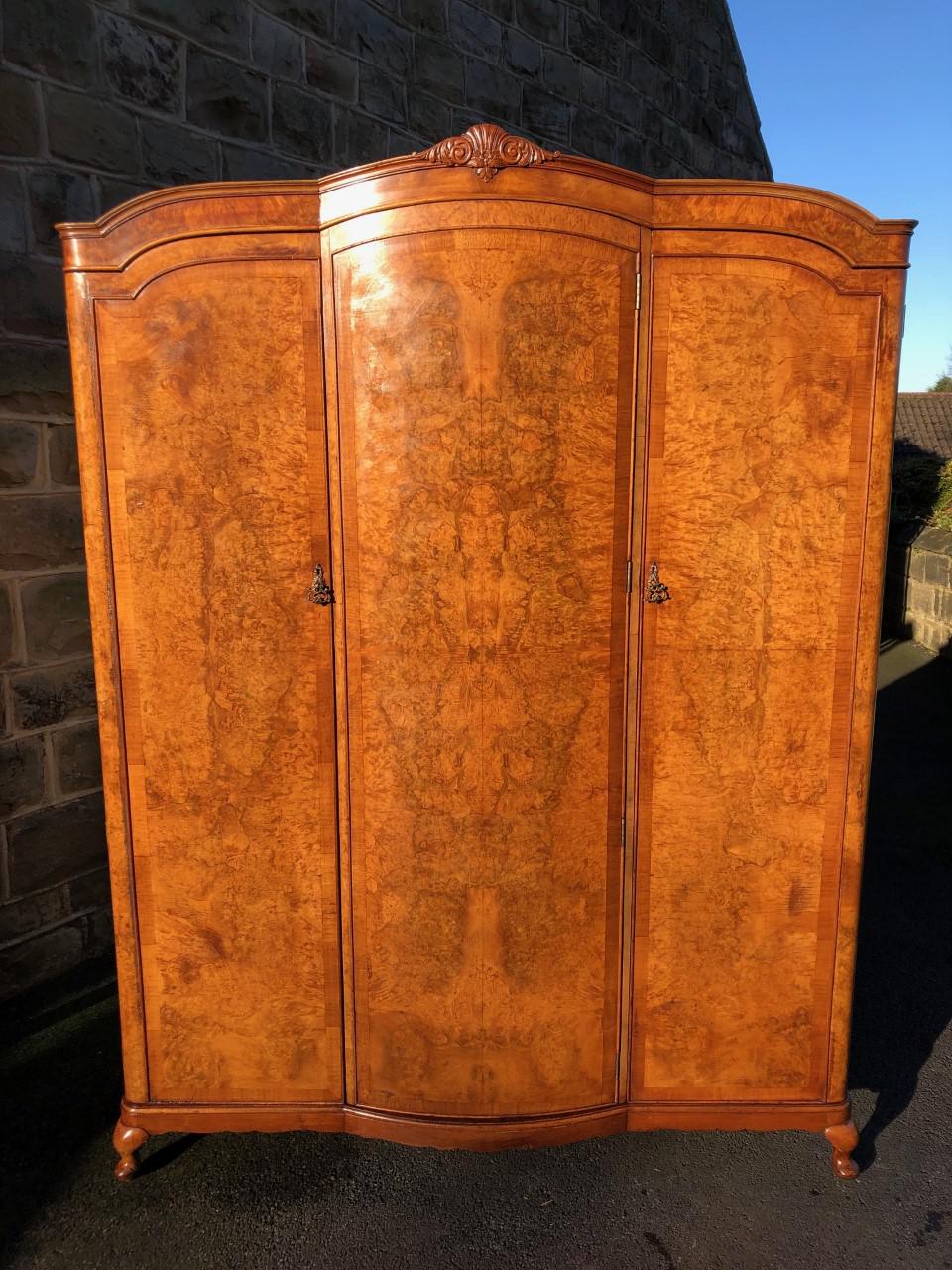 Antique Burr Walnut Triple Wardrobe