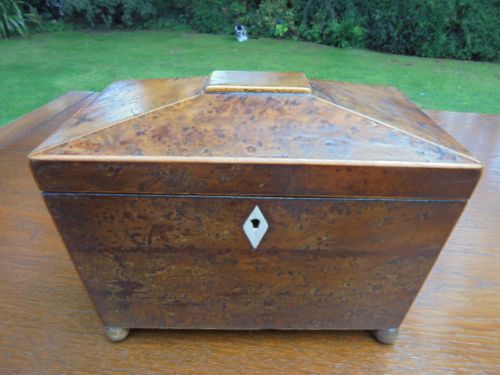 Antique Burr Yew Sarcophagus Tea Caddy c.1820
