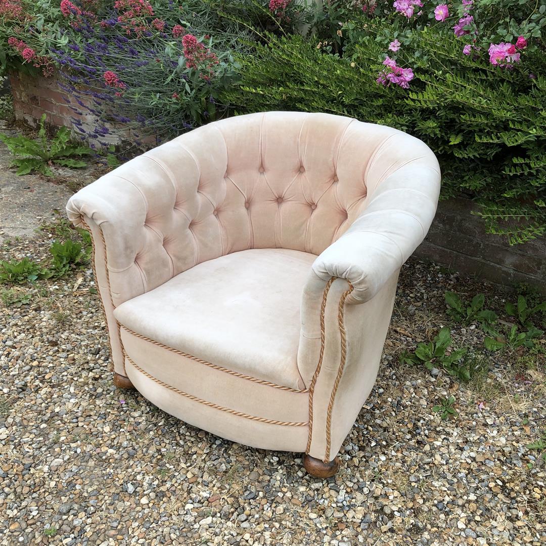 Antique Button Upholstered Tub Armchair 1920s (1 of 9)
