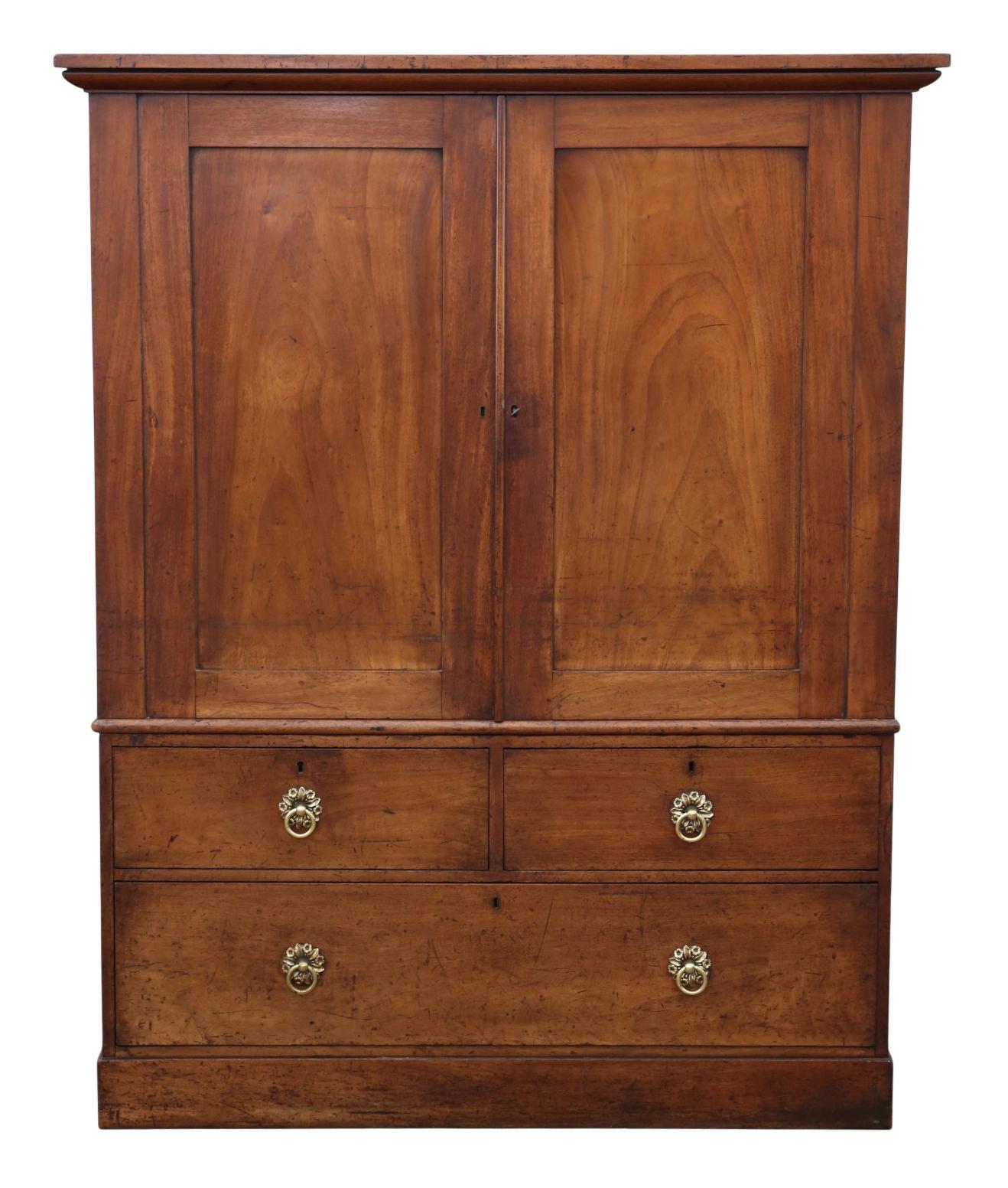 Antique c.1800 Georgian Mahogany Linen Press Wardrobe Cupboard Chest – Fine Quality