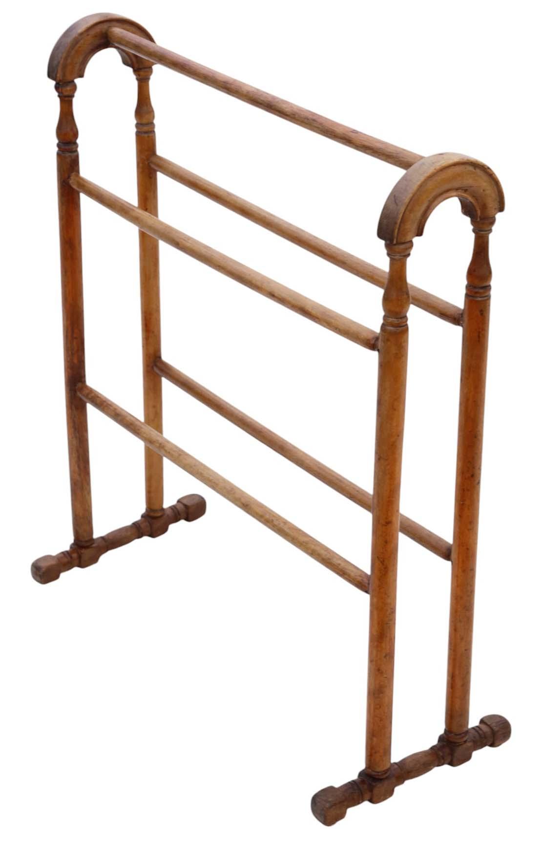 Antique c.1900 Fine Quality Beech & Walnut Towel Rail Stand (1 of 4)