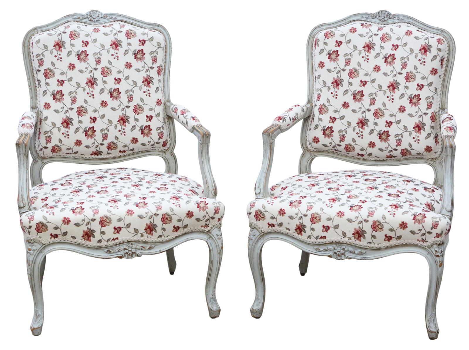 Antique c.1900 French Pair of Painted Armchairs – Quality Period Seating
