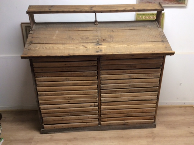 Antique C19th Rustic French Oak,Beech and Pine 32 Drawer Printers Chest 146cm Wide