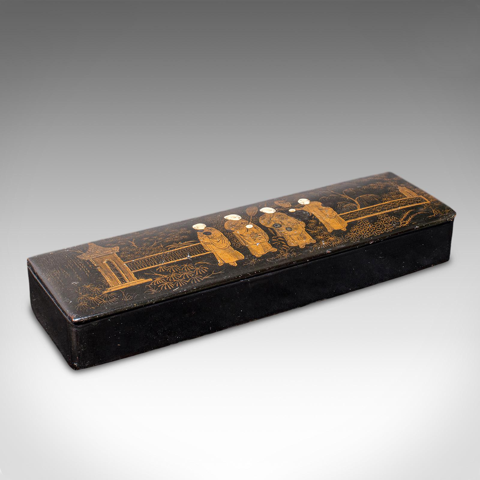Antique Calligrapher's Pen Box, Lacquered, Quill Case, Chinoiserie, Victorian