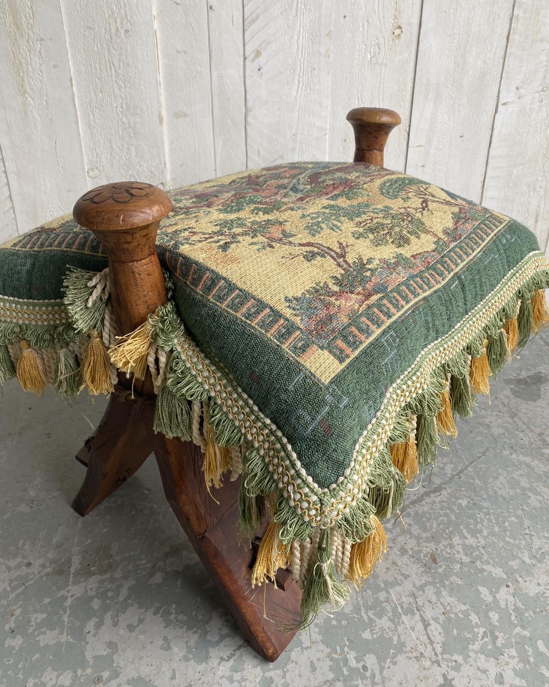 Antique Camel Stool with French Antique Tapestry Cover