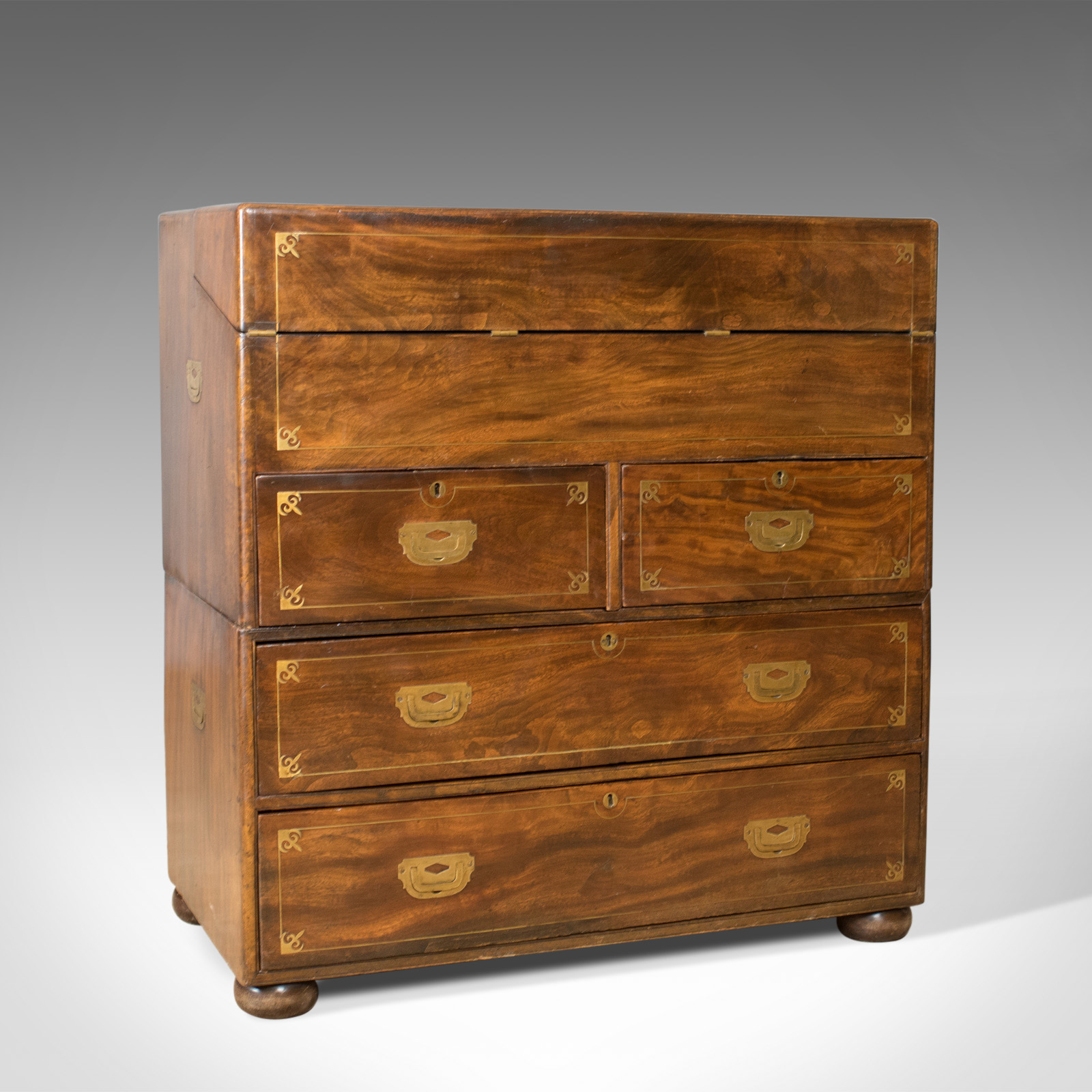 Antique Campaign Chest, Edwardian, Officer's Secretaire, Drawers, Bureau