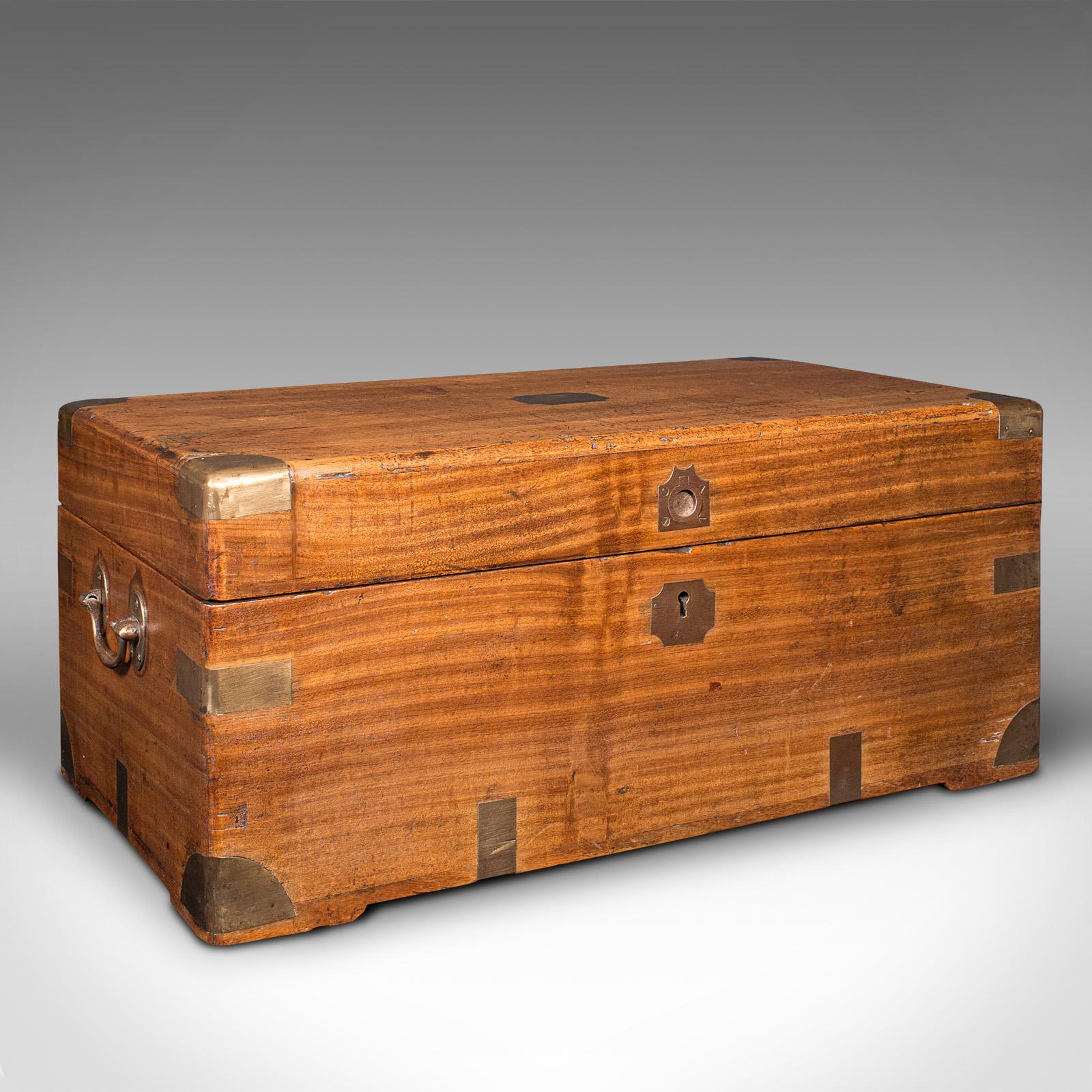 Antique Campaign Chest, English, Camphorwood Storage Box, Trunk, Victorian, 1850