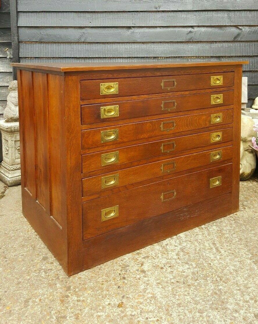 Antique Campaign Oak Map / Architects Chest