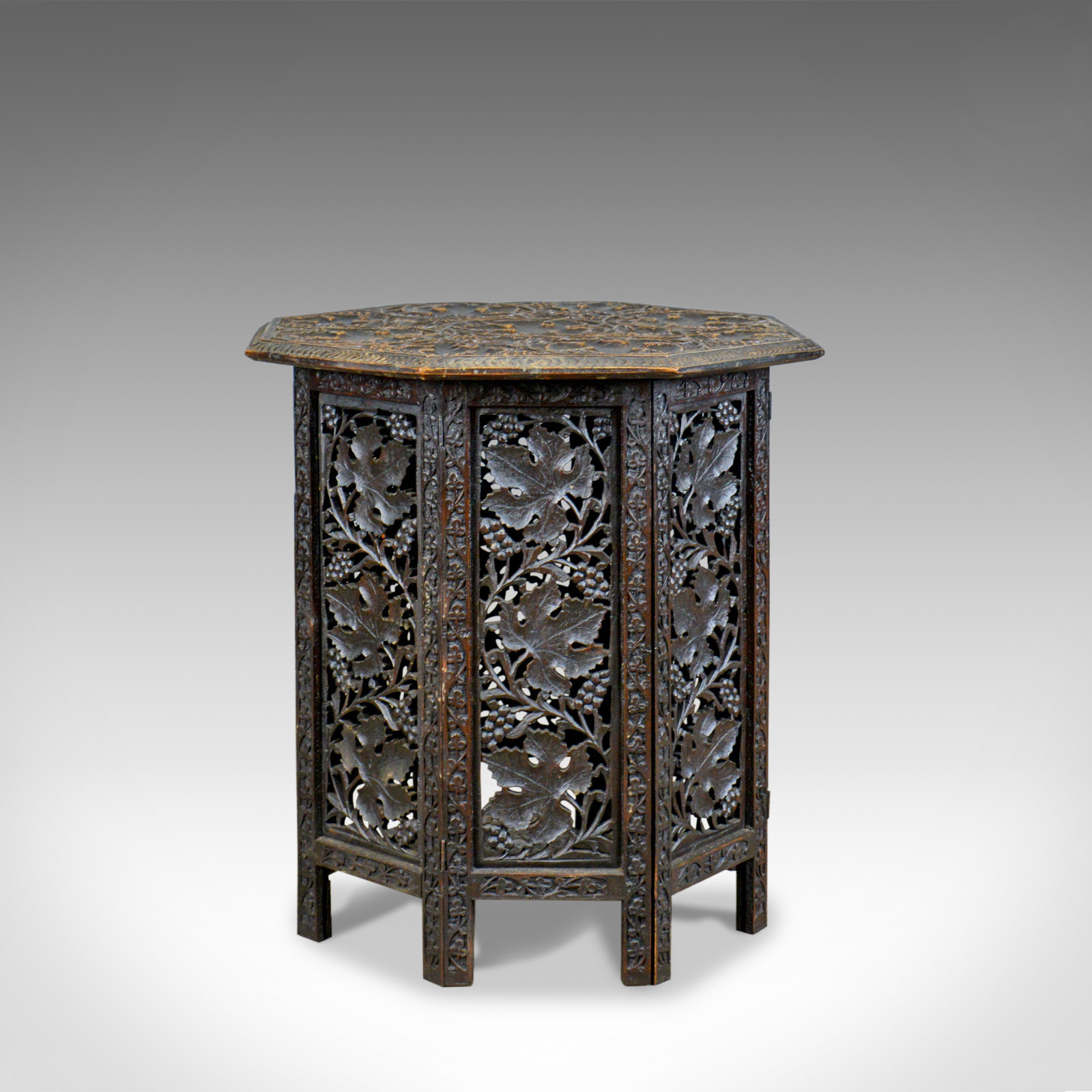 Antique Campaign Table, Carved, Asian Teak, Side c.1900