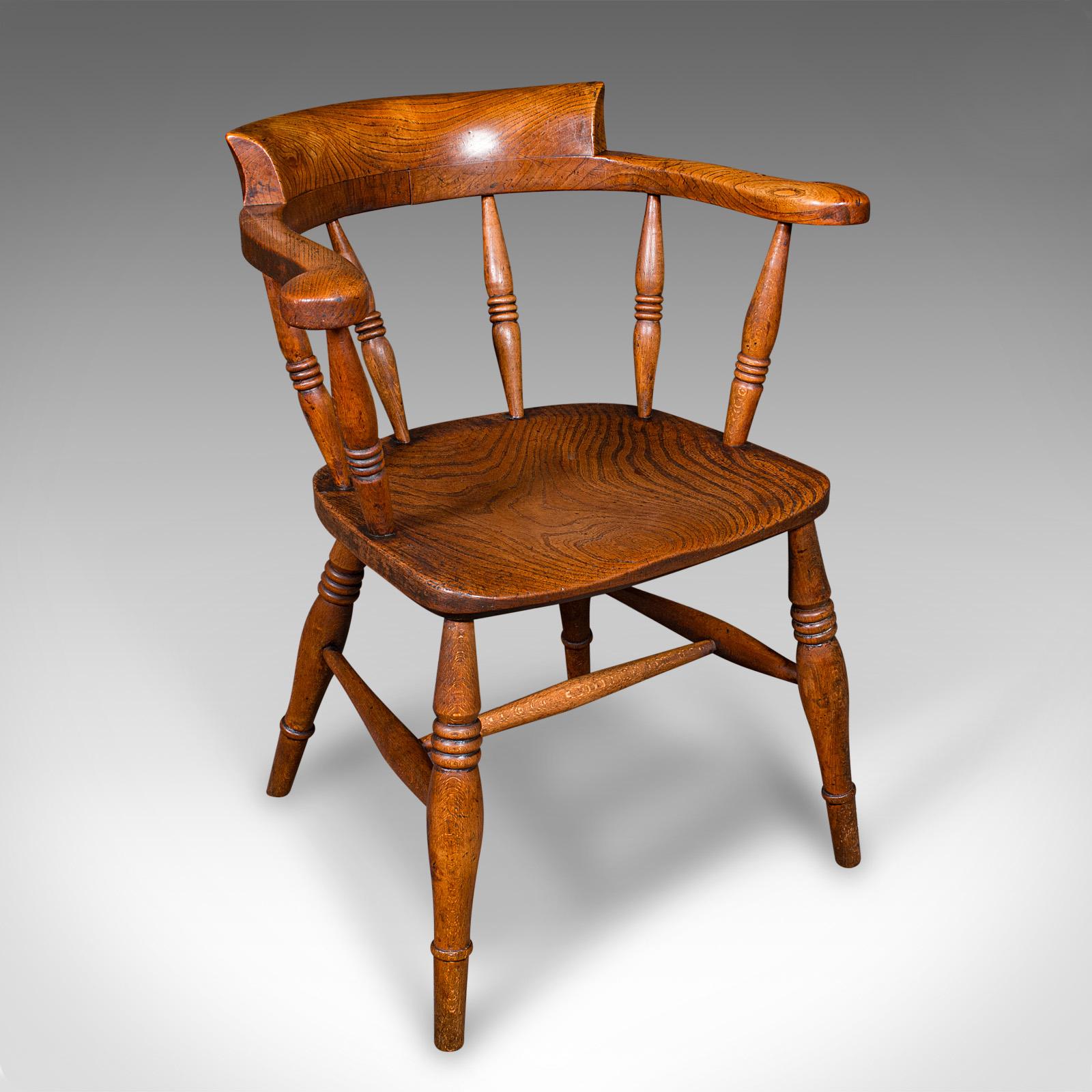 Antique Captain's Desk Chair, English, Elm, Smoker's Bow, Elbow Seat - Victorian c.1880