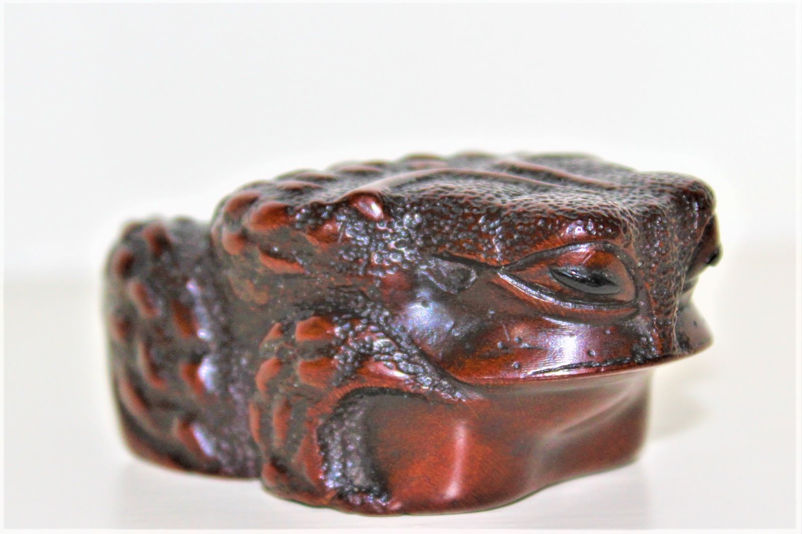 Antique Carved Boxwood Netsuke of a Warted Toad Signed Masanao c.1870