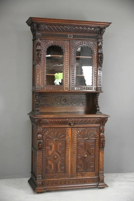 Antique Carved Continental Glazed Bookcase