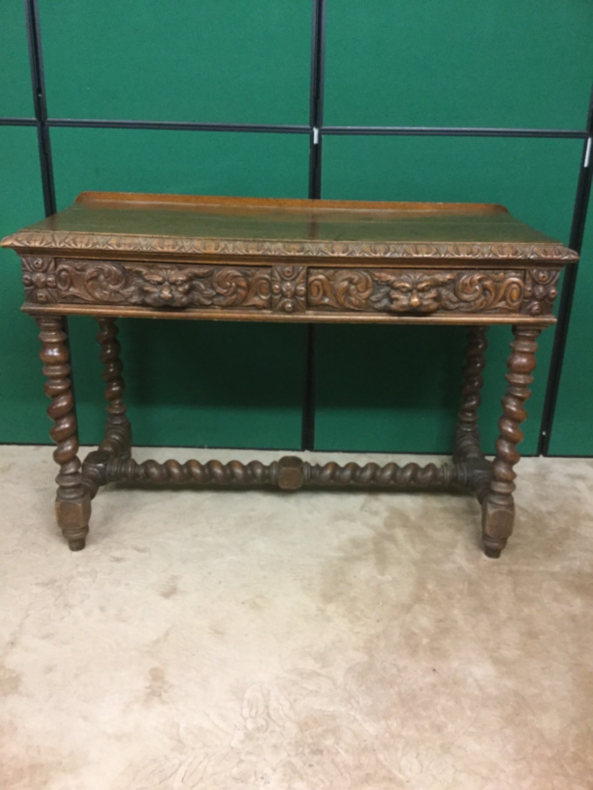 Antique Carved Lions Head Oak Console Table / Desk