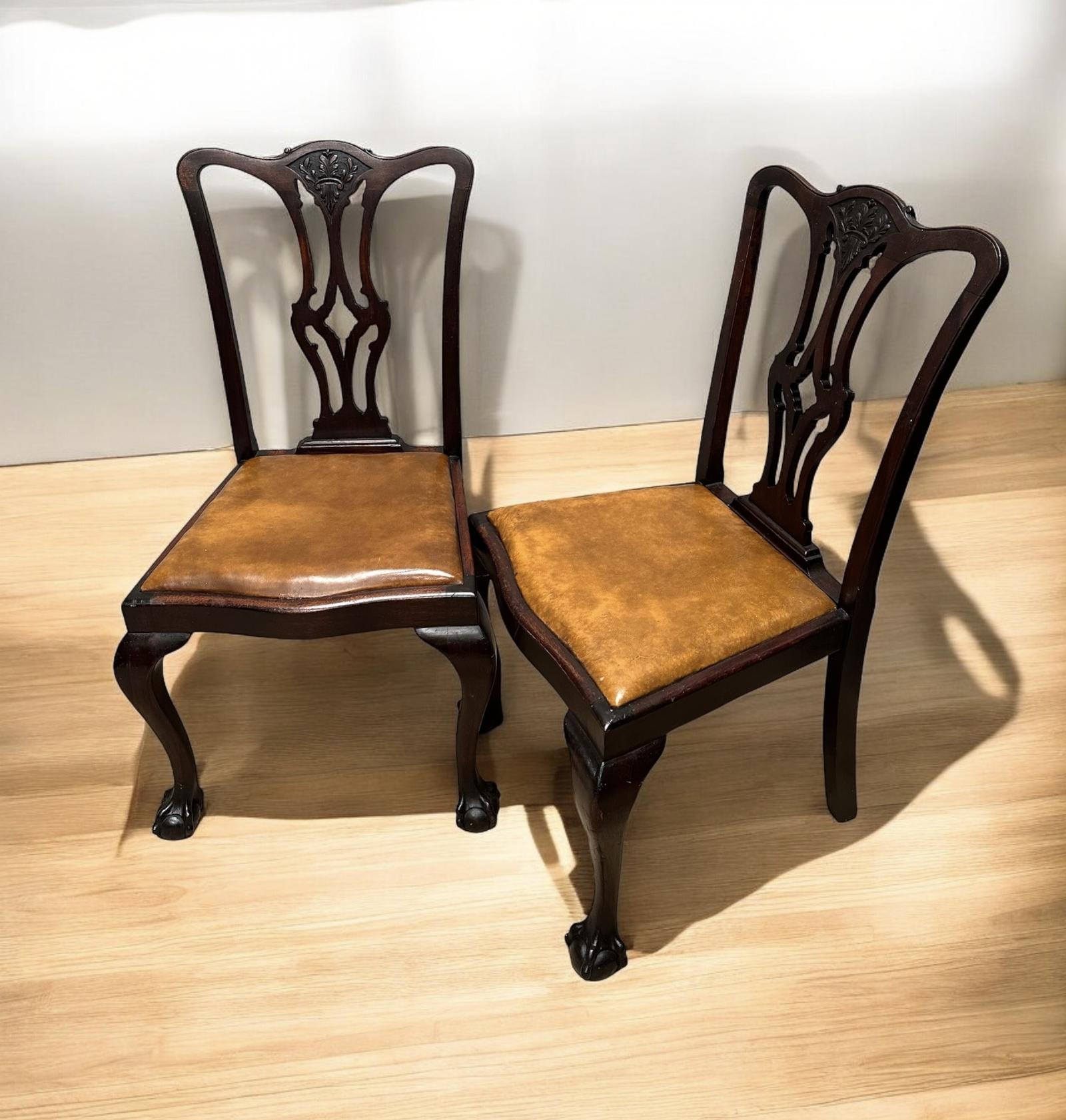 Antique Carved Mahogany Chair / Chippendale Style / Set of Two c.1830