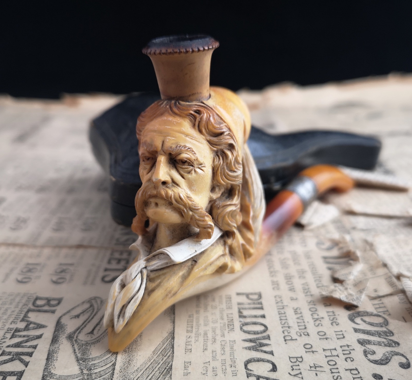 Antique Carved Meerschaum & Amber Pipe, Gentleman