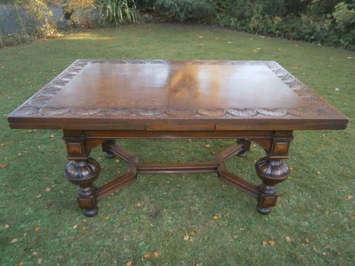 Antique Carved Oak 12 Seater Extending Dining Table by Waring's of Liverpool c.1890