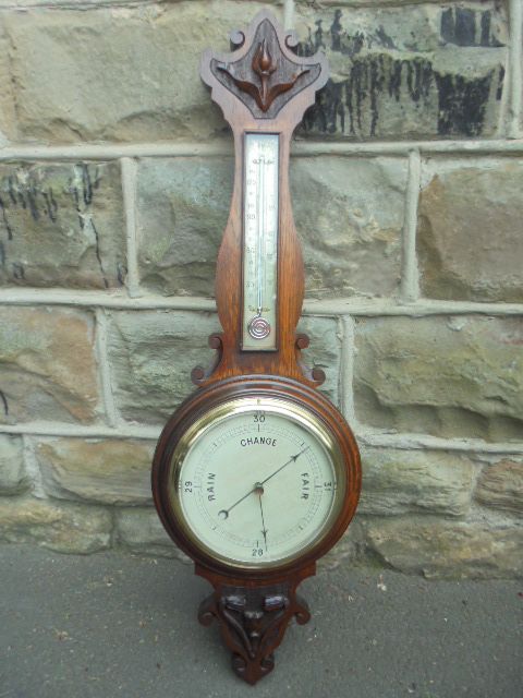 Antique Carved Oak Aneroid Barometer c.1910
