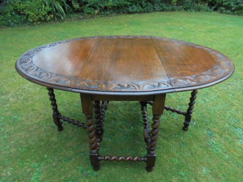 Antique Carved Oak Barley Twist Drop Leaf Dining Table / Kitchen Table c.1900