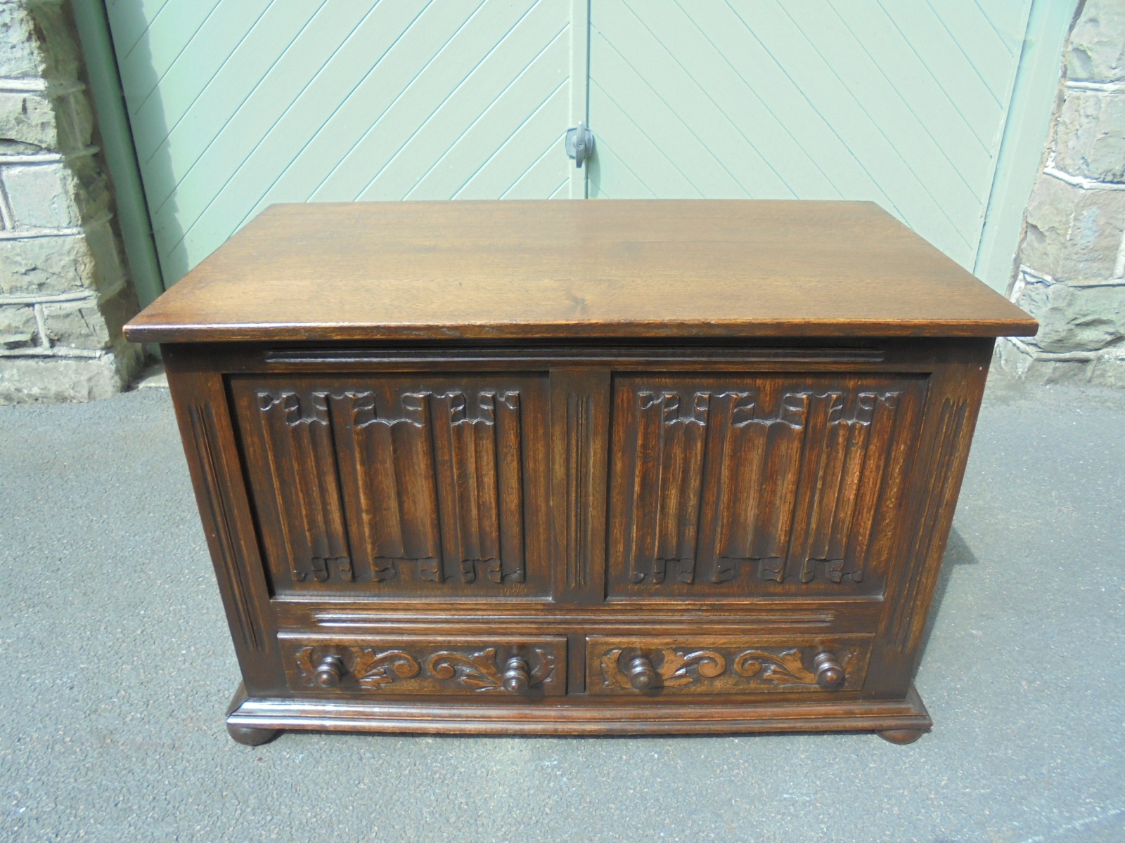 Antique Carved Oak Blanket Chest Coffer c.1910