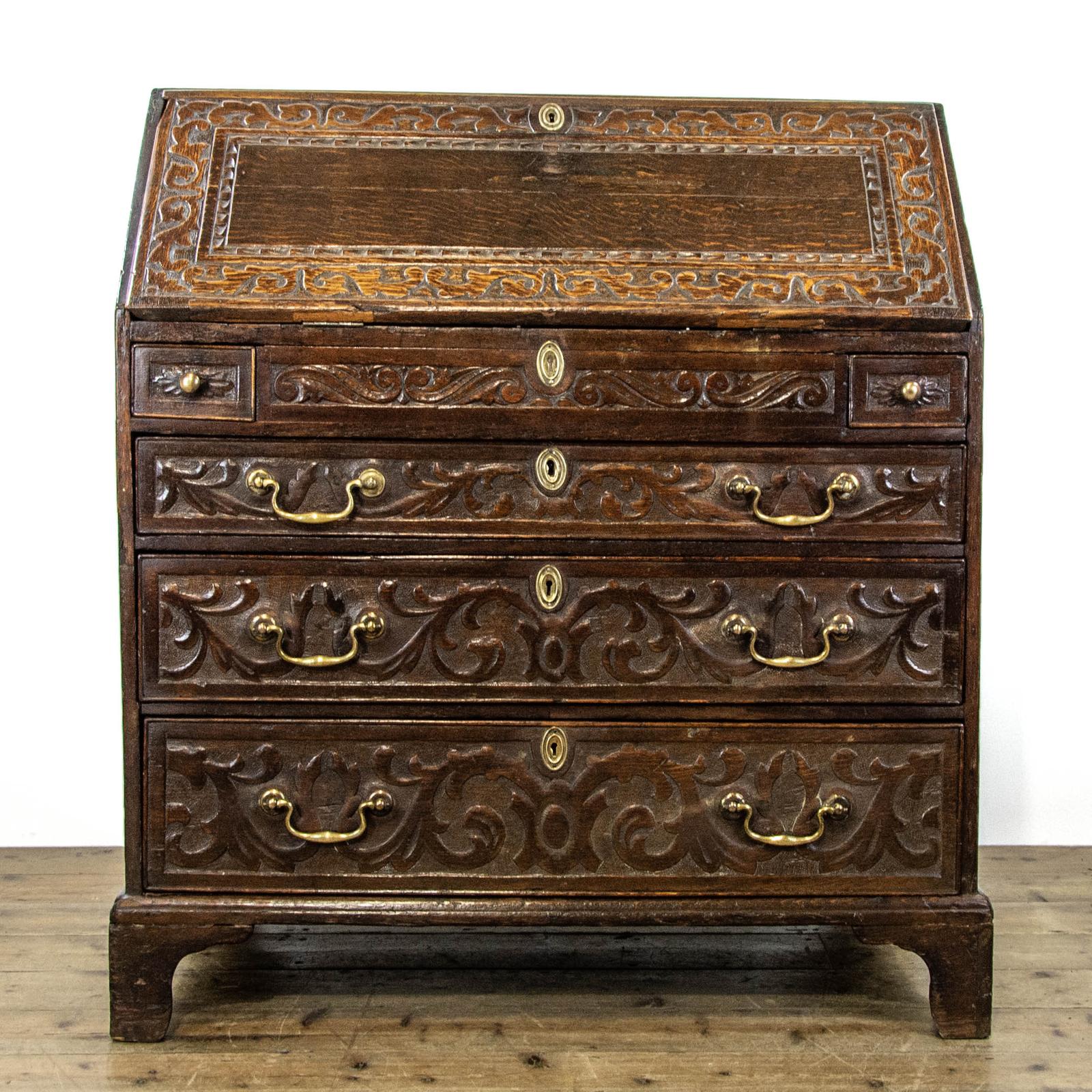 Antique Carved Oak Bureau (1 of 15)
