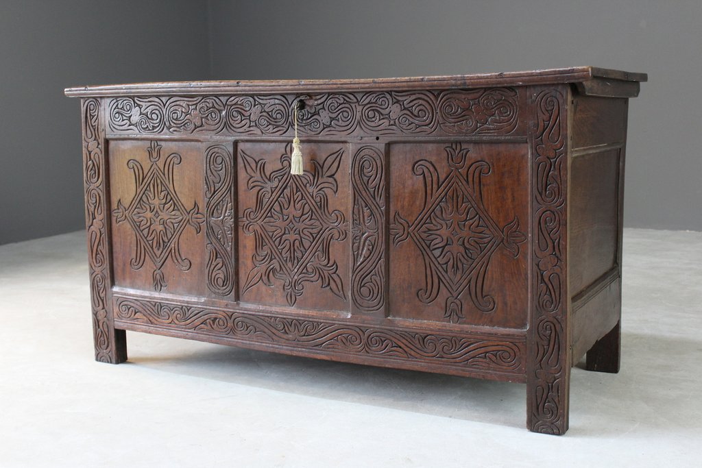Antique Carved Oak Coffer (1 of 12)