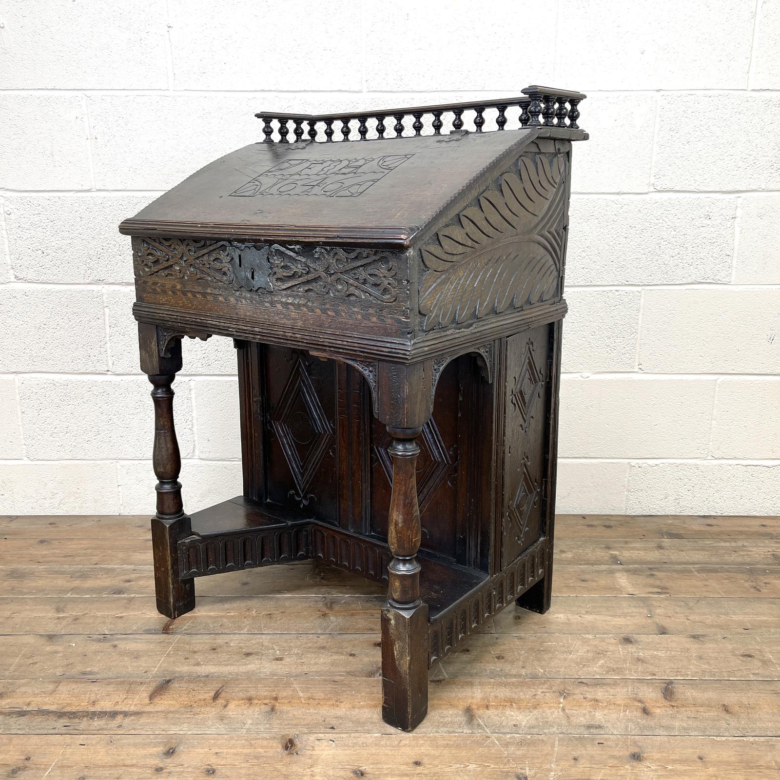Antique Carved Oak Desk Dated 1646 (1 of 10)
