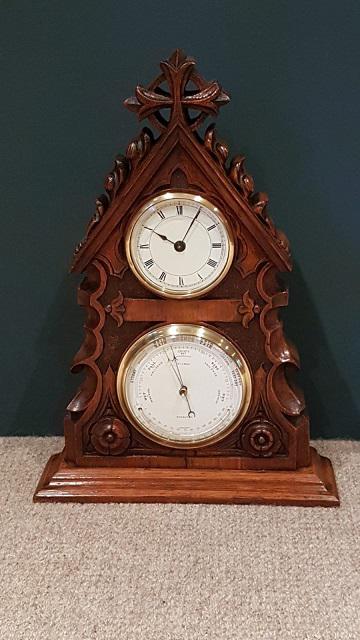 Antique Carved Oak Desktop Clock Barometer