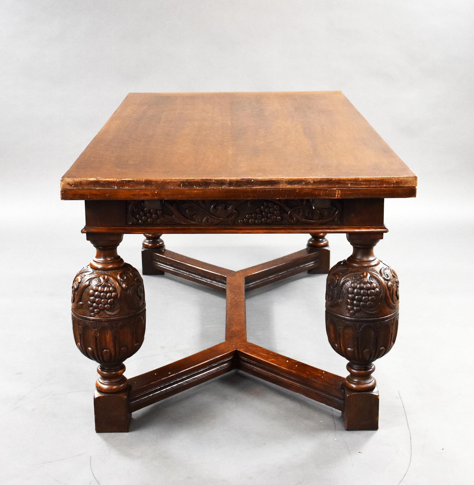 Antique Carved Oak Draw Leaf Dining Table