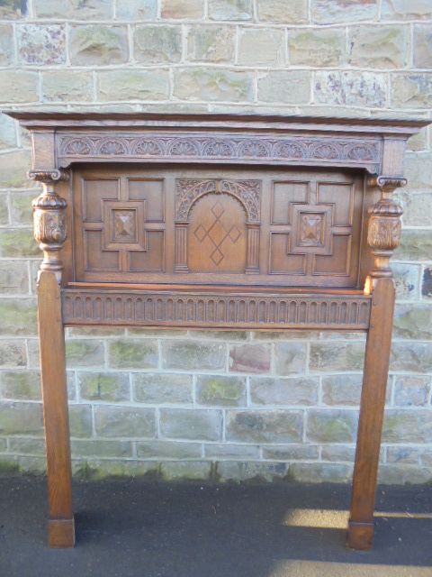 Antique Carved Oak Fire Place Fire Surround c.1900
